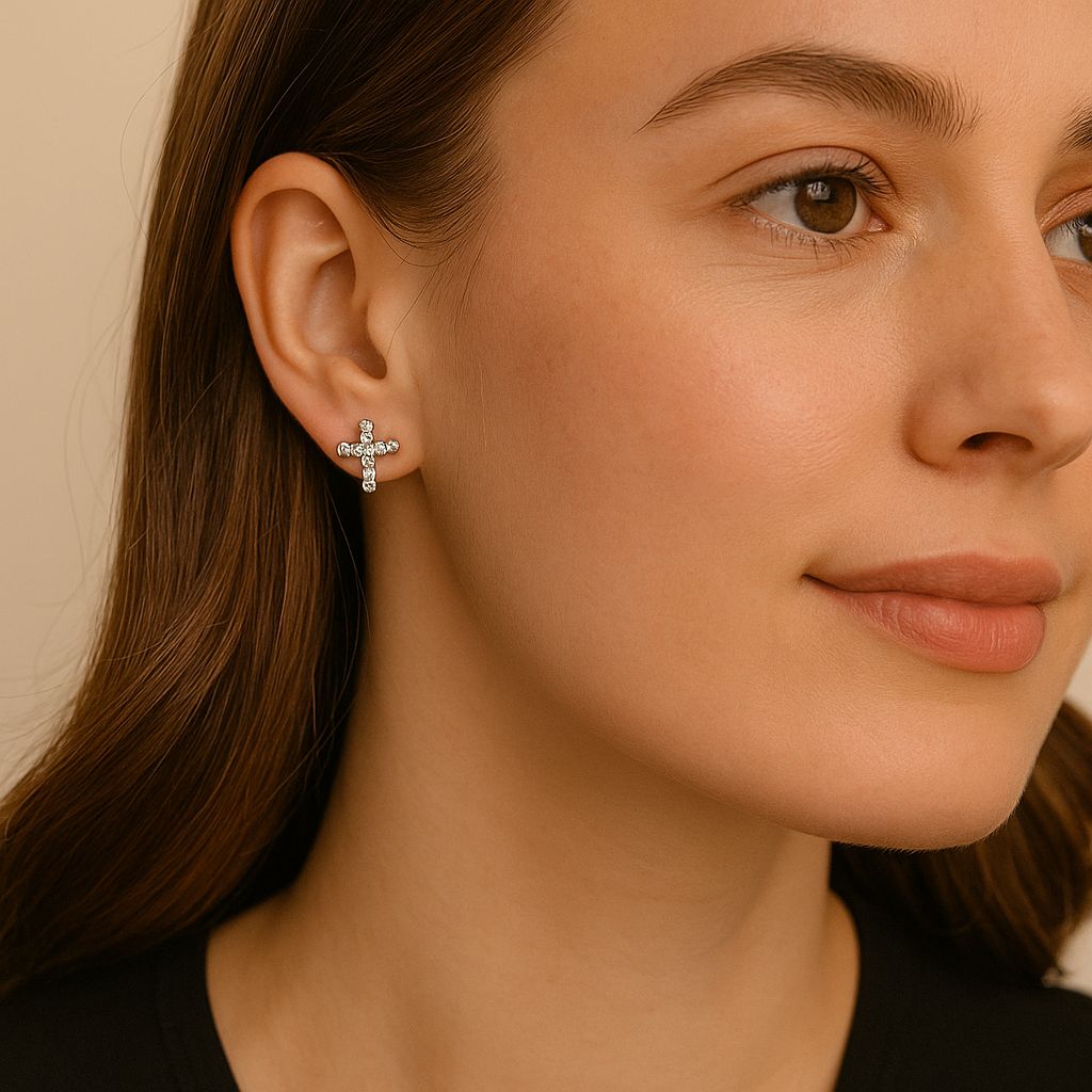 Add a touch of faith and sparkle to your style with these Brain Cross Earring. Crafted from high-quality 925 sterling silver, each earring is designed in a classic cross shape and set with sparkling clear stones for subtle yet stunning brilliance.